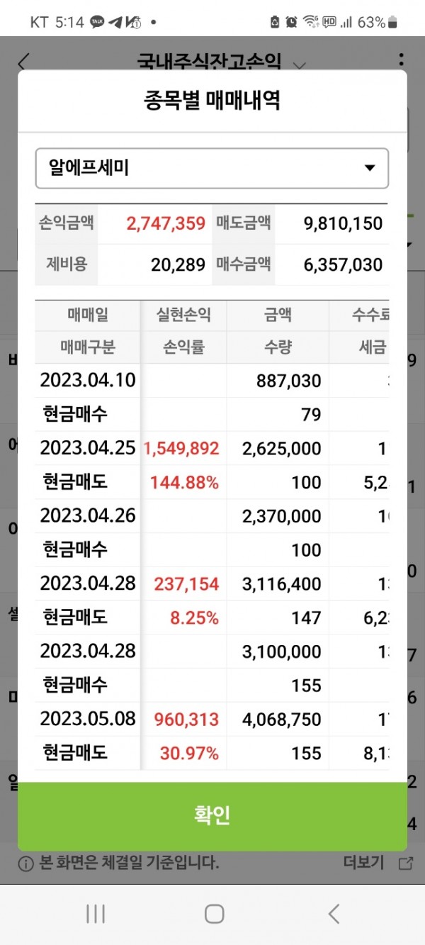 2023/05/08 정원장 종목 수익 인증