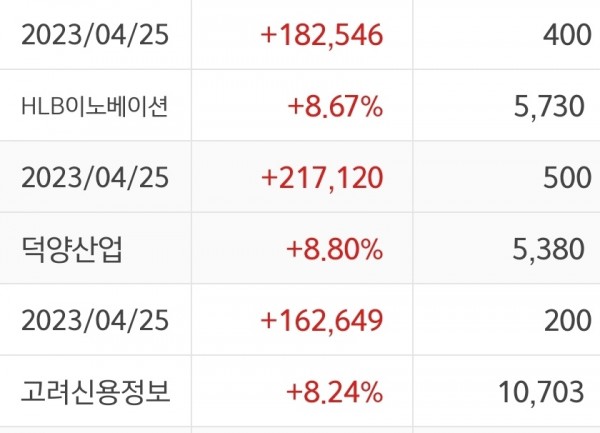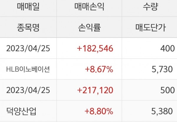 2023/04/25 정원장 종목 수익 인증