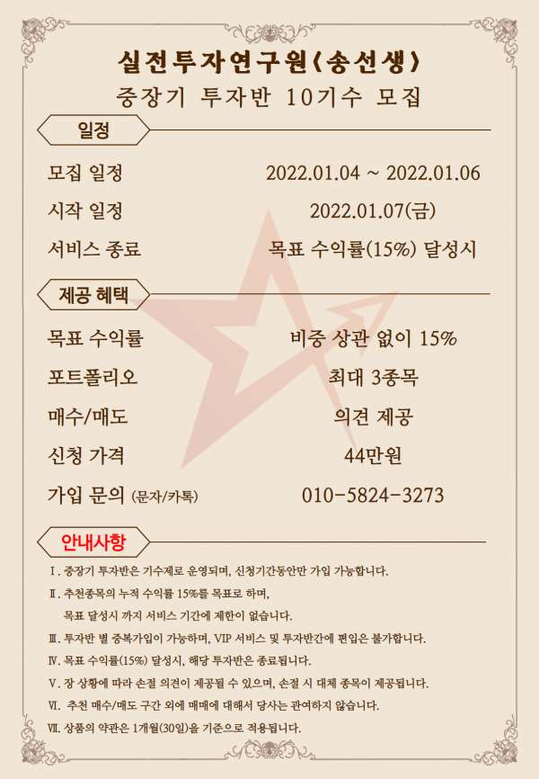 <중장기 투자반 10기>_송선생 모집 안내 / 종료