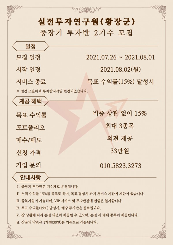 <중장기 투자반 2기>_황장군 모집 안내 / 종료
